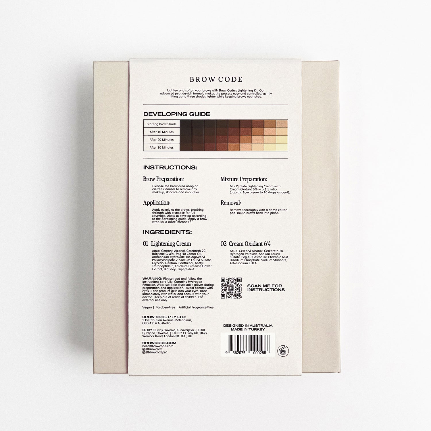 Meet your at-home styling essential for effortless, sun-touched definition. The Brow Lightening Kit softens and lightens brow hairs by up to 3 shades for a brighter, more balanced look. Featuring an advanced bond-building formula enriched with peptides, pro-vitamins and botanical extracts, it nourishes and protects each strand from root to tip, revealing brows that are stronger, healthier and naturally luminous.